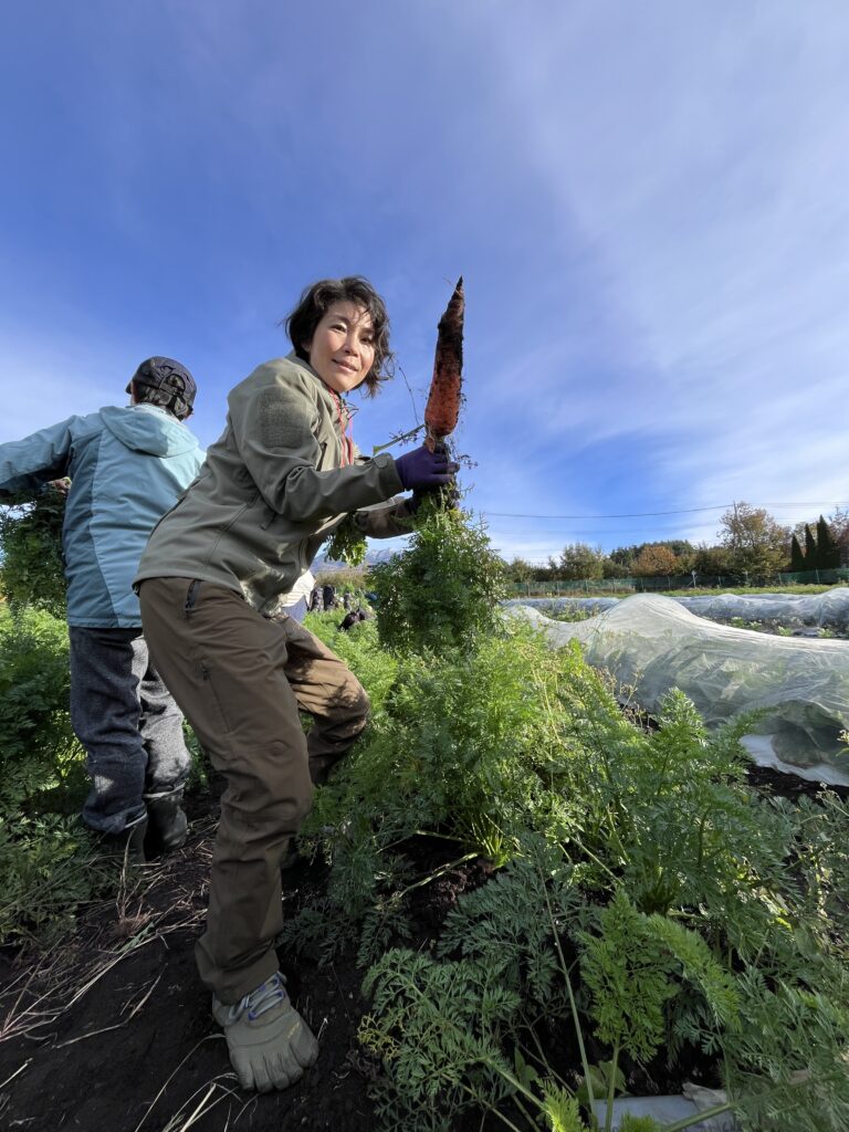 土付き人参を収穫して、そのまま、農場で朝ごはん。