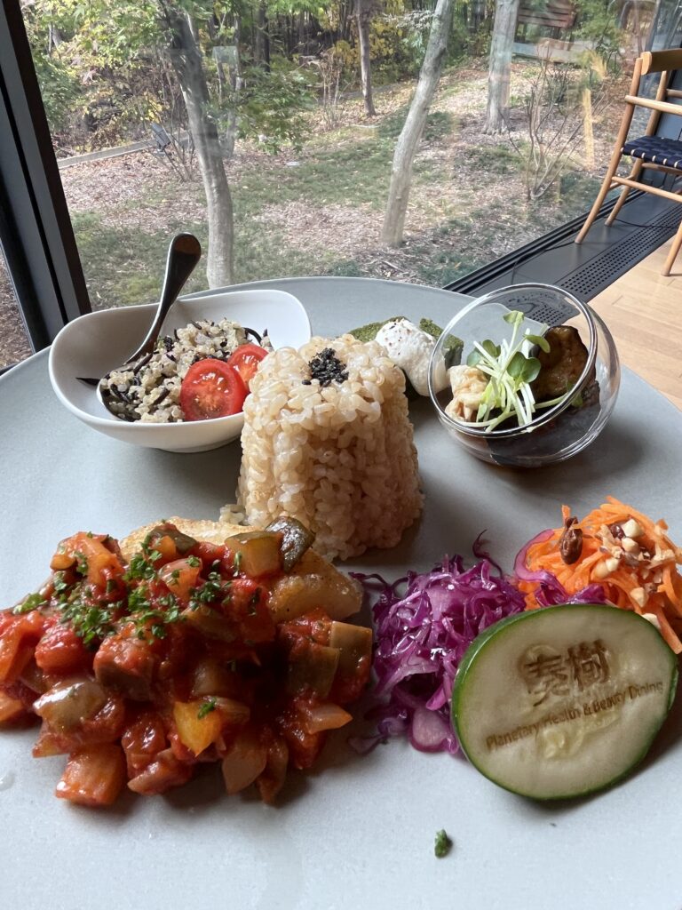 プラネタリーヘルスダイニング「奏樹」では、レインボーファームの野菜プレートが食べられます。