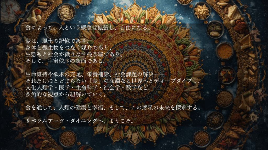 一皿を通じて風土・生命・社会・宇宙との関係性を体感的に理解する学びの場です。
